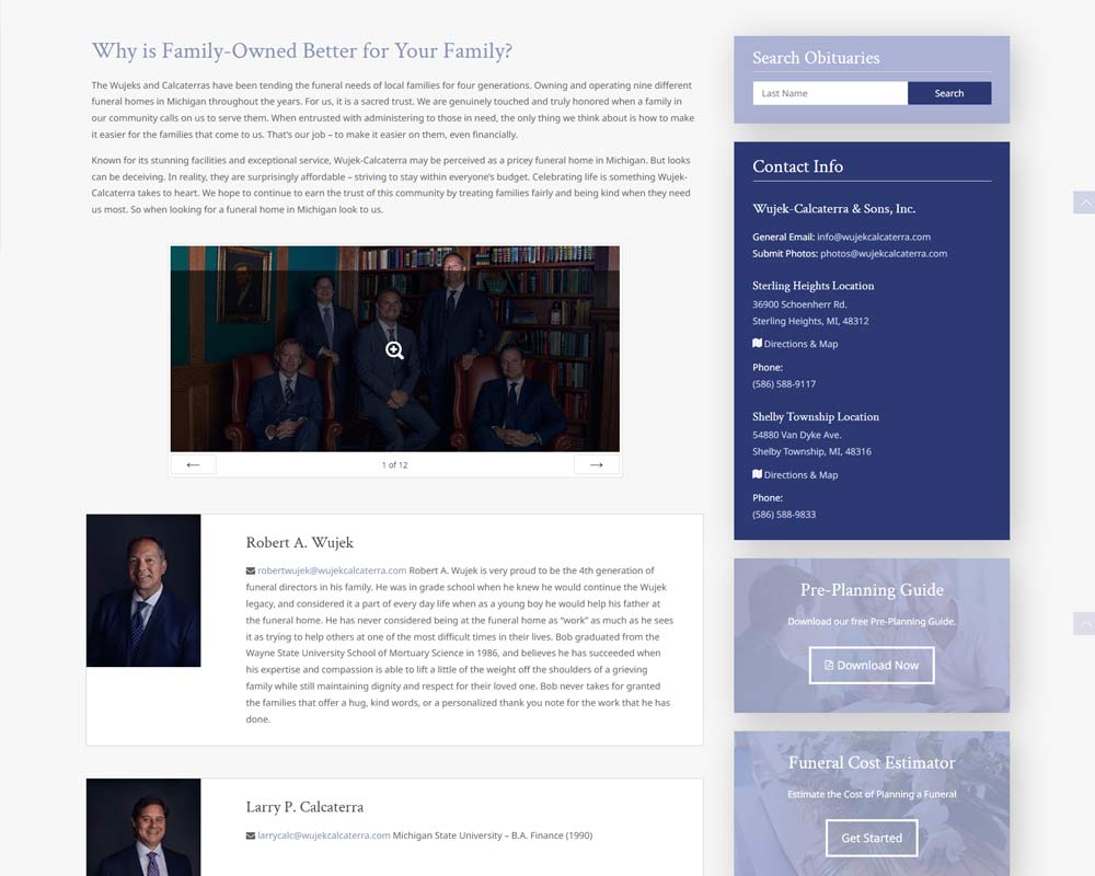 Wujek-Calcaterra & Sons is a fourth-generation funeral home serving families throughout Sterling Heights and Shelby Township and one of the last independent locations in the area. They came to Momentum in 2018 because they needed help building a more modern, functional website that showcased their values, services, and experience.
