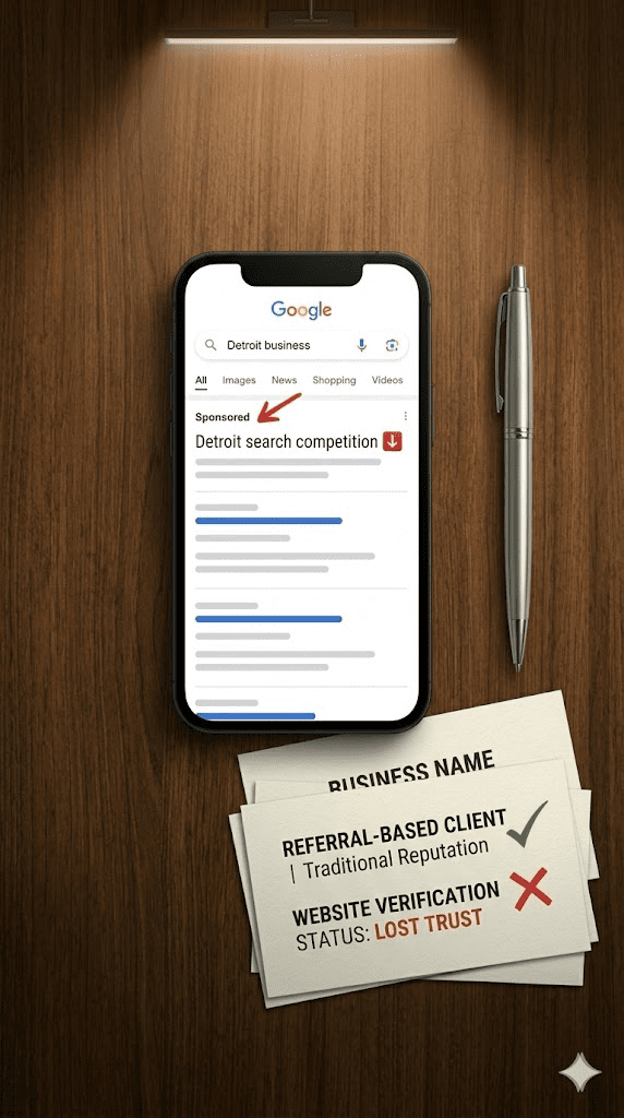 Detroit-based businesses especially experience strong search competition. Suburban businesses sometimes assume they are competing locally — when in reality, they’re competing against the entire metro area.