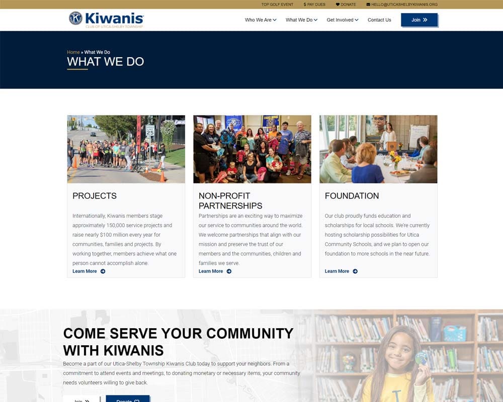 As a non-profit organization, Kiwanis Club Utica-Shelby Township focused most of their efforts on their community outreach events and needed help building an online presence.